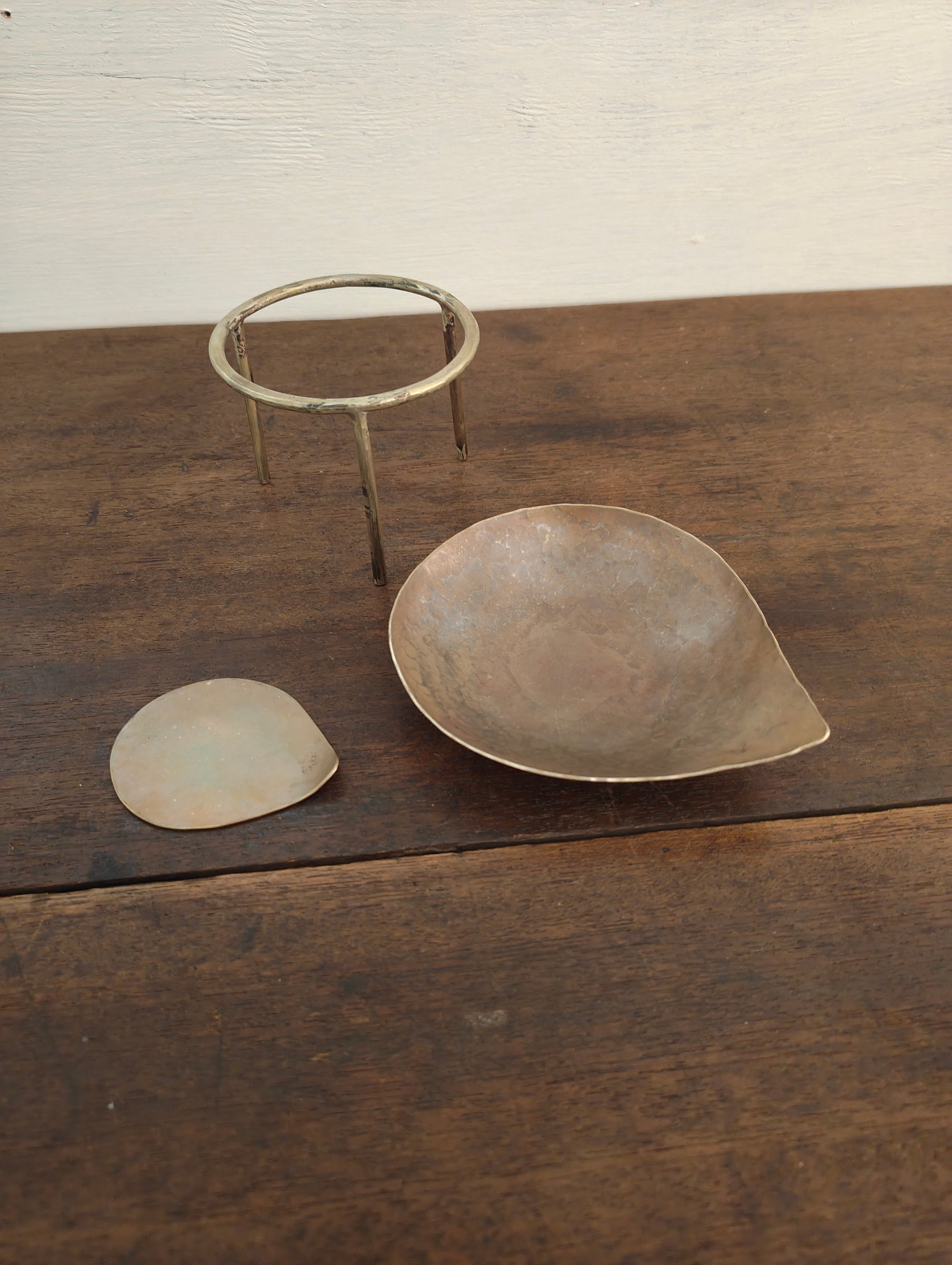 金槌で叩いた後や細かなキズ、手作りならではの歪みが特徴な味のある仕上がりです。