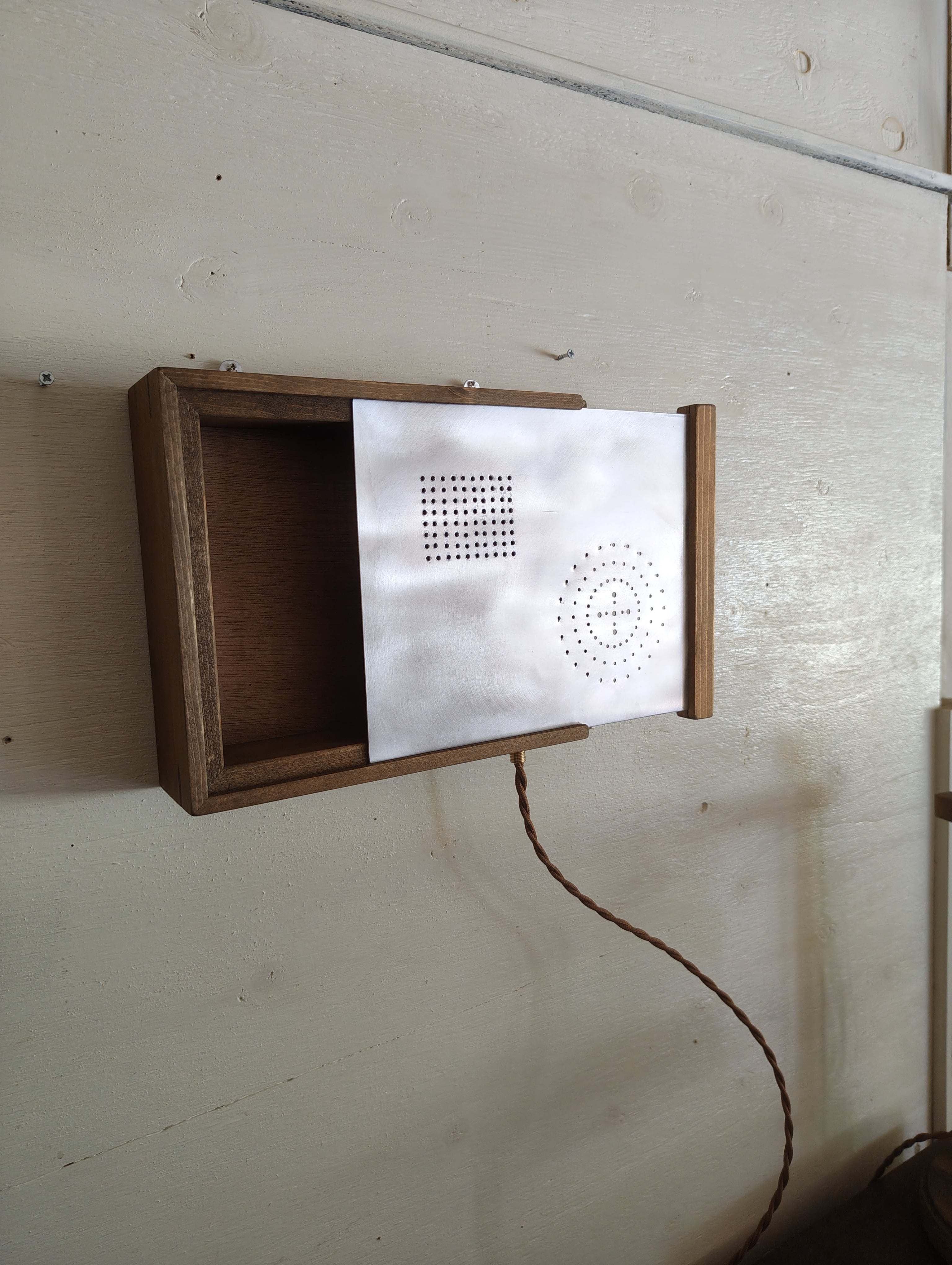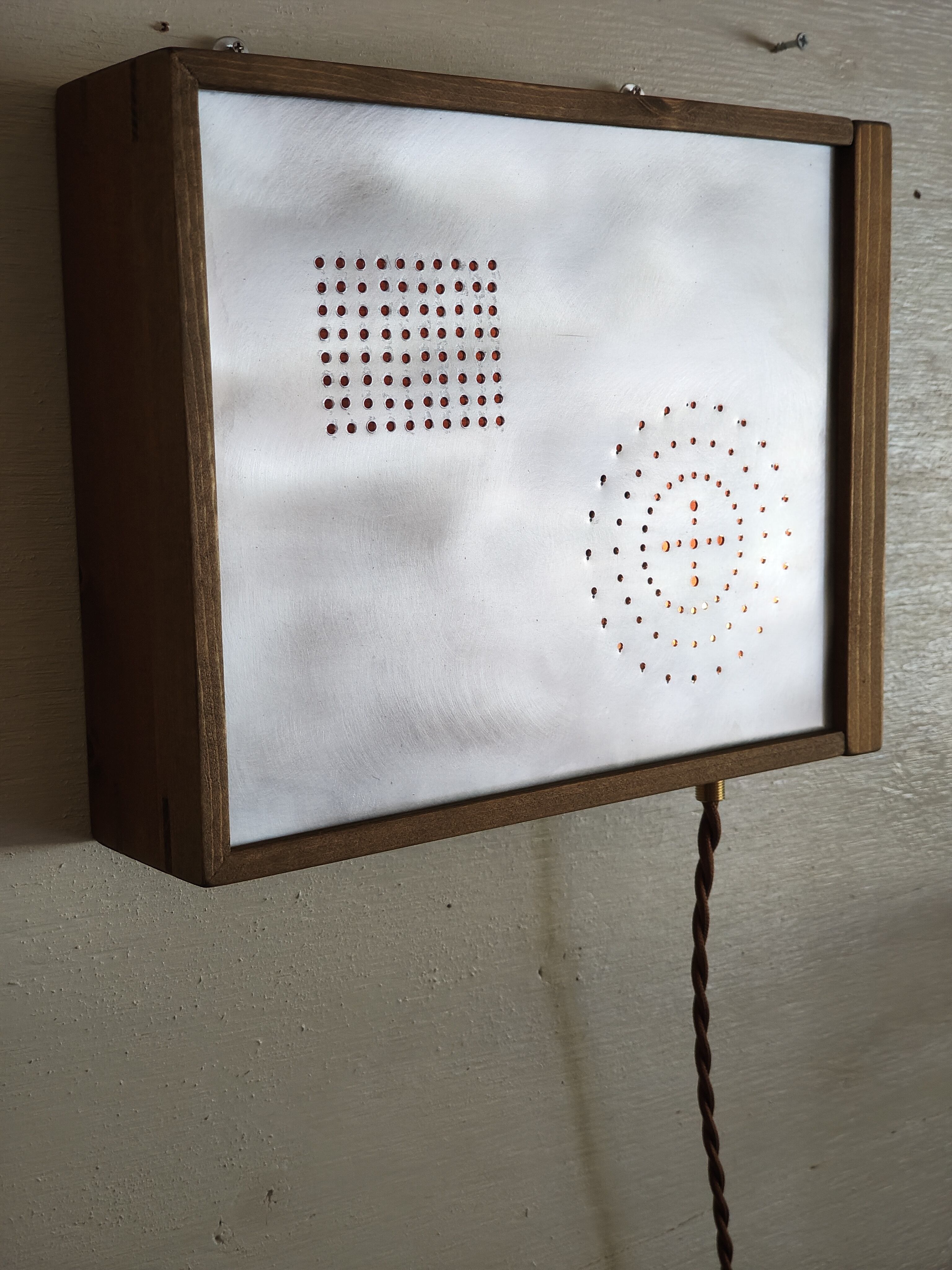 表面は、一枚のアルミ板を叩き出して形作ったもの。ハンマーの跡が残る表情は、光をやわらかく反射し、どこか懐かしい雰囲気を漂わせます。