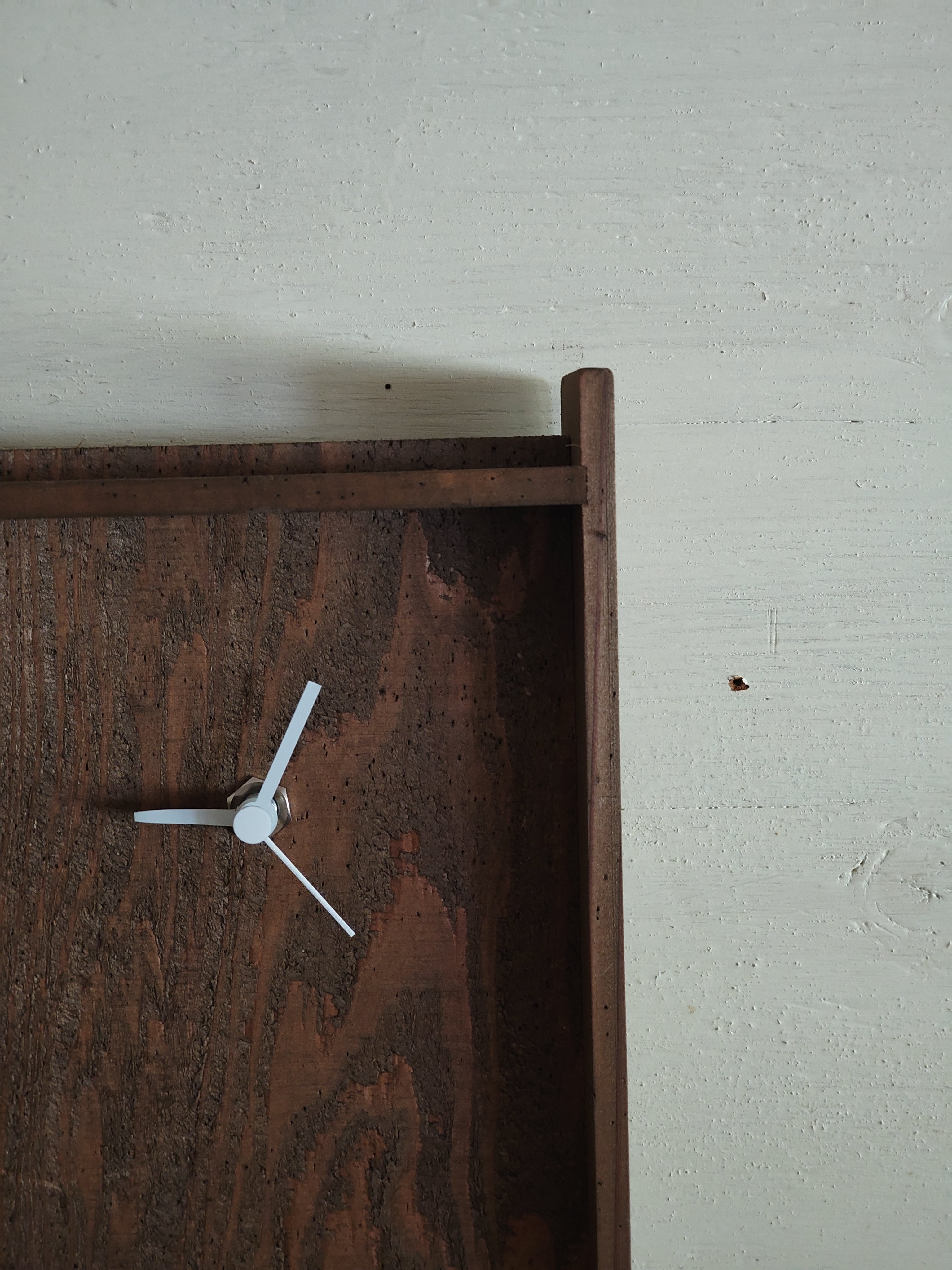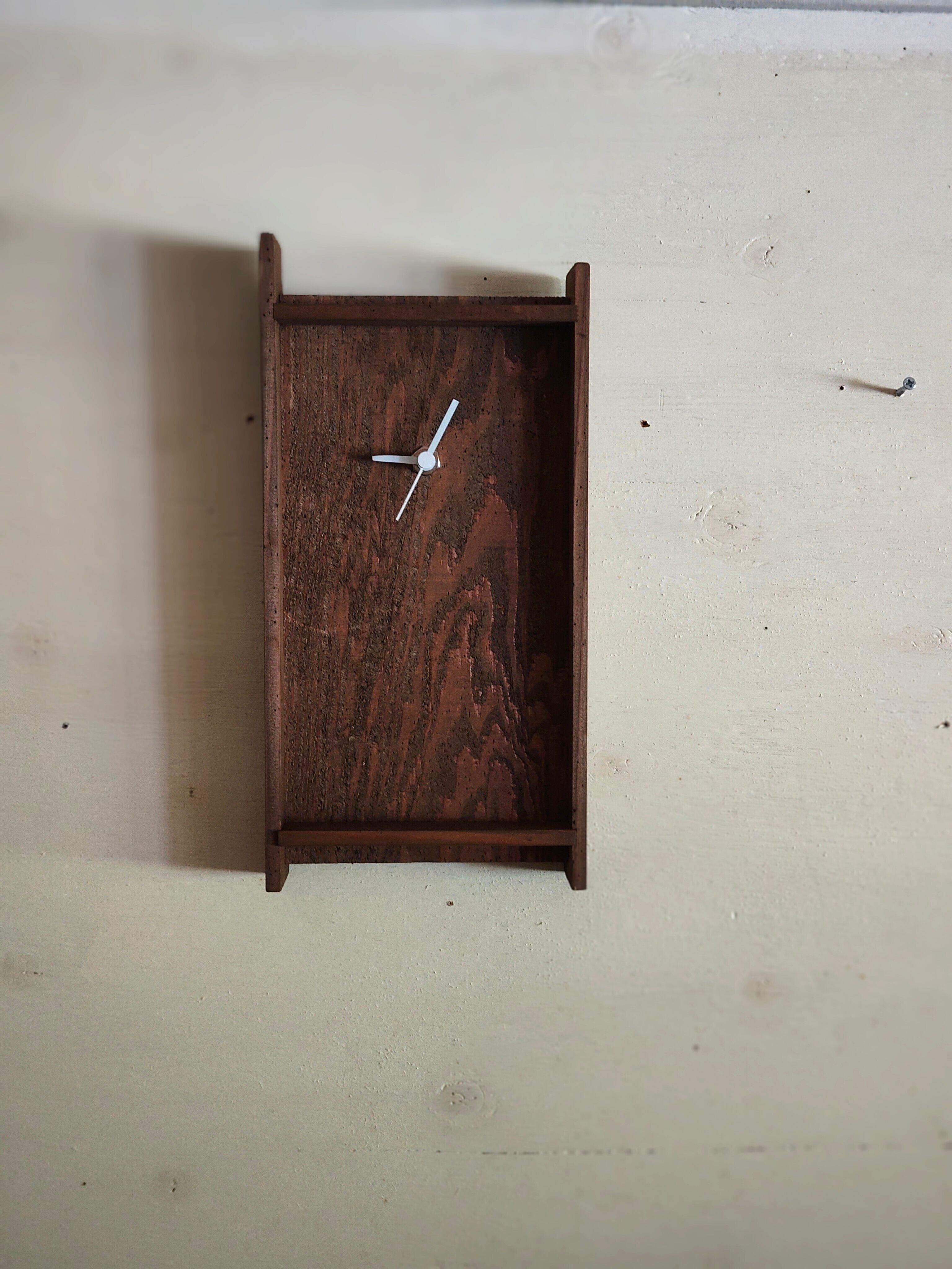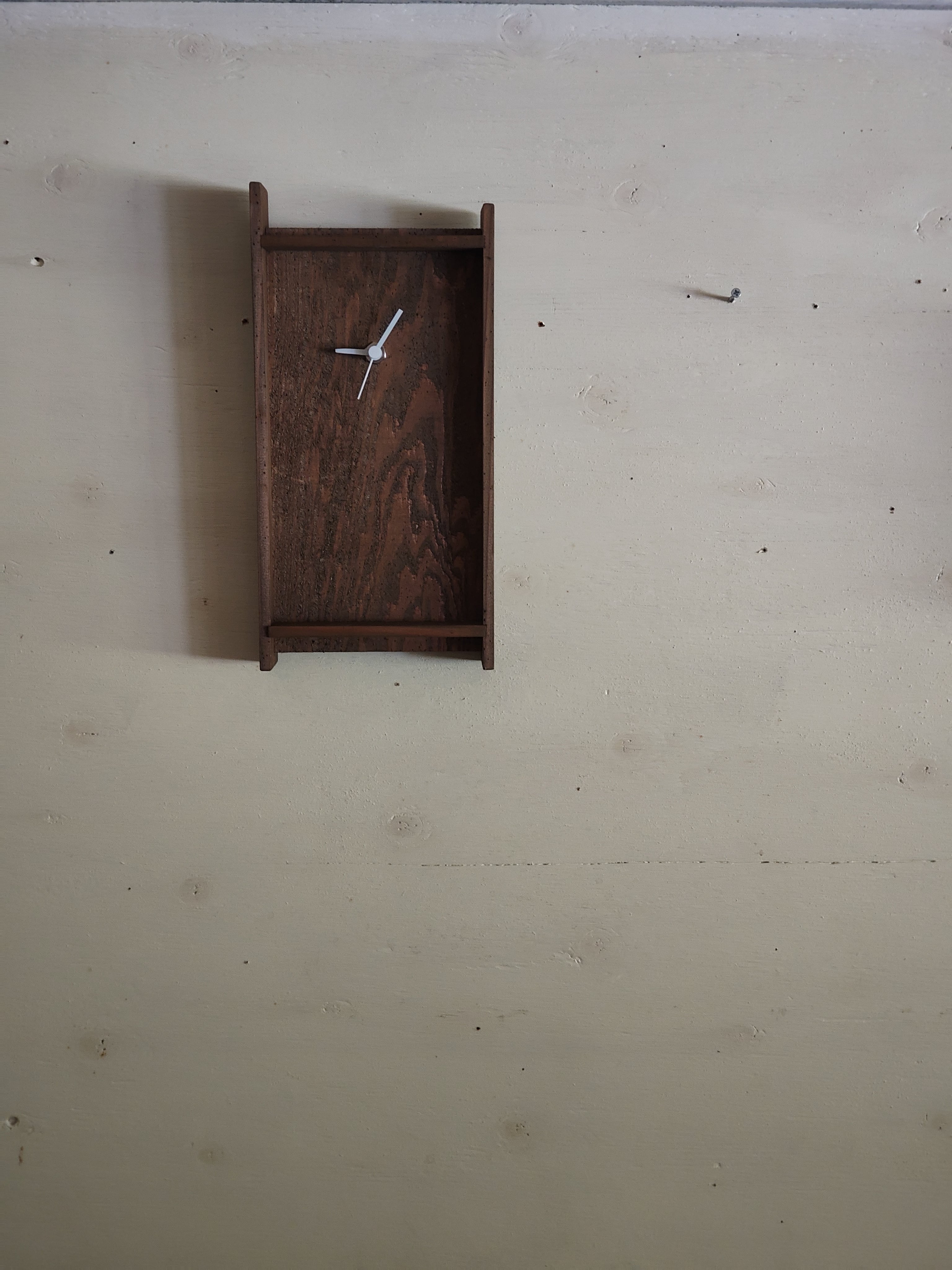 木の質感をそのまま活かした、箱型の壁掛け時計です。