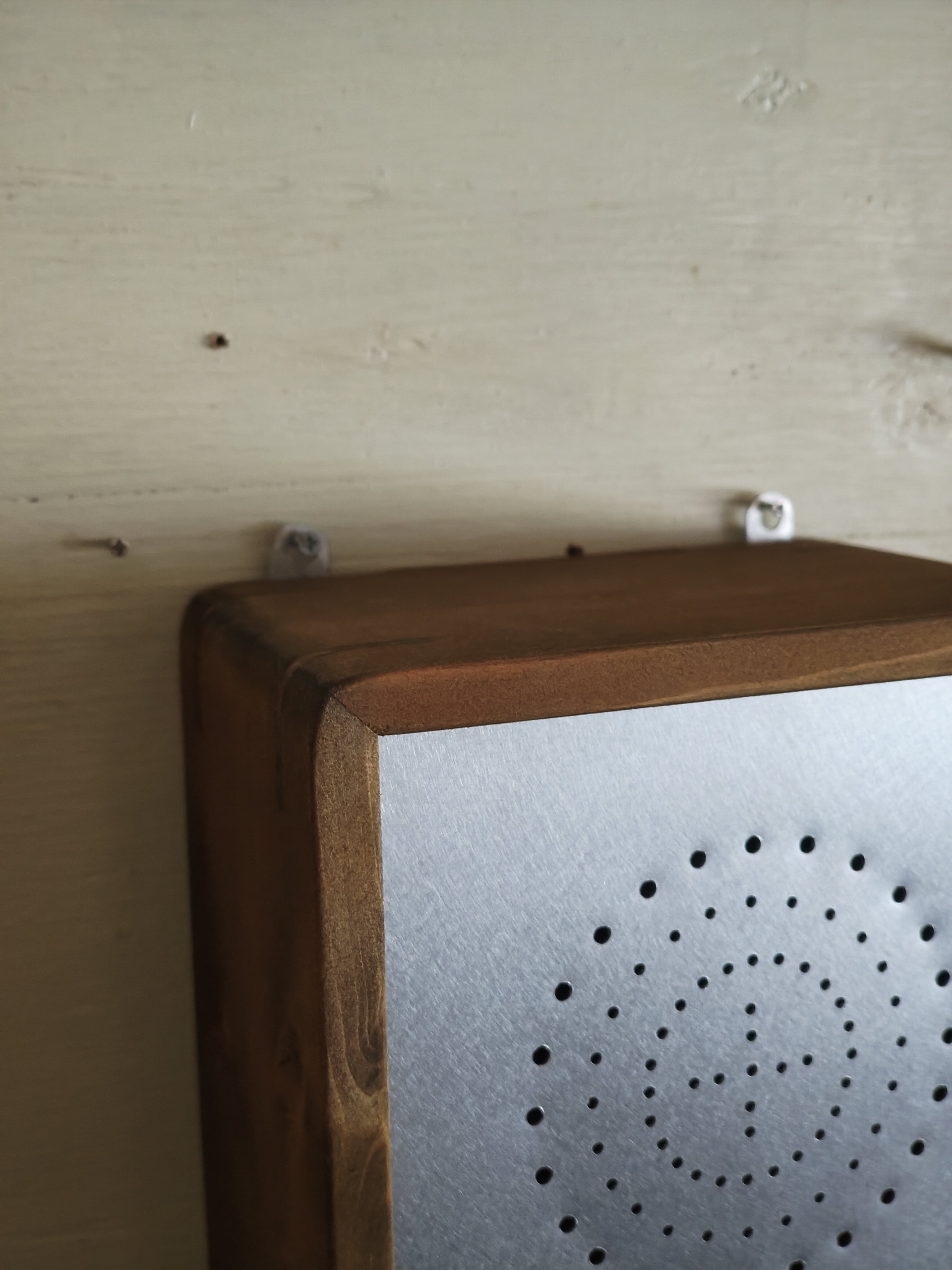 表面は、一枚のアルミ板を叩き出して形作ったもの。ハンマーの跡が残る表情は、光をやわらかく反射し、どこか懐かしい雰囲気を漂わせます。