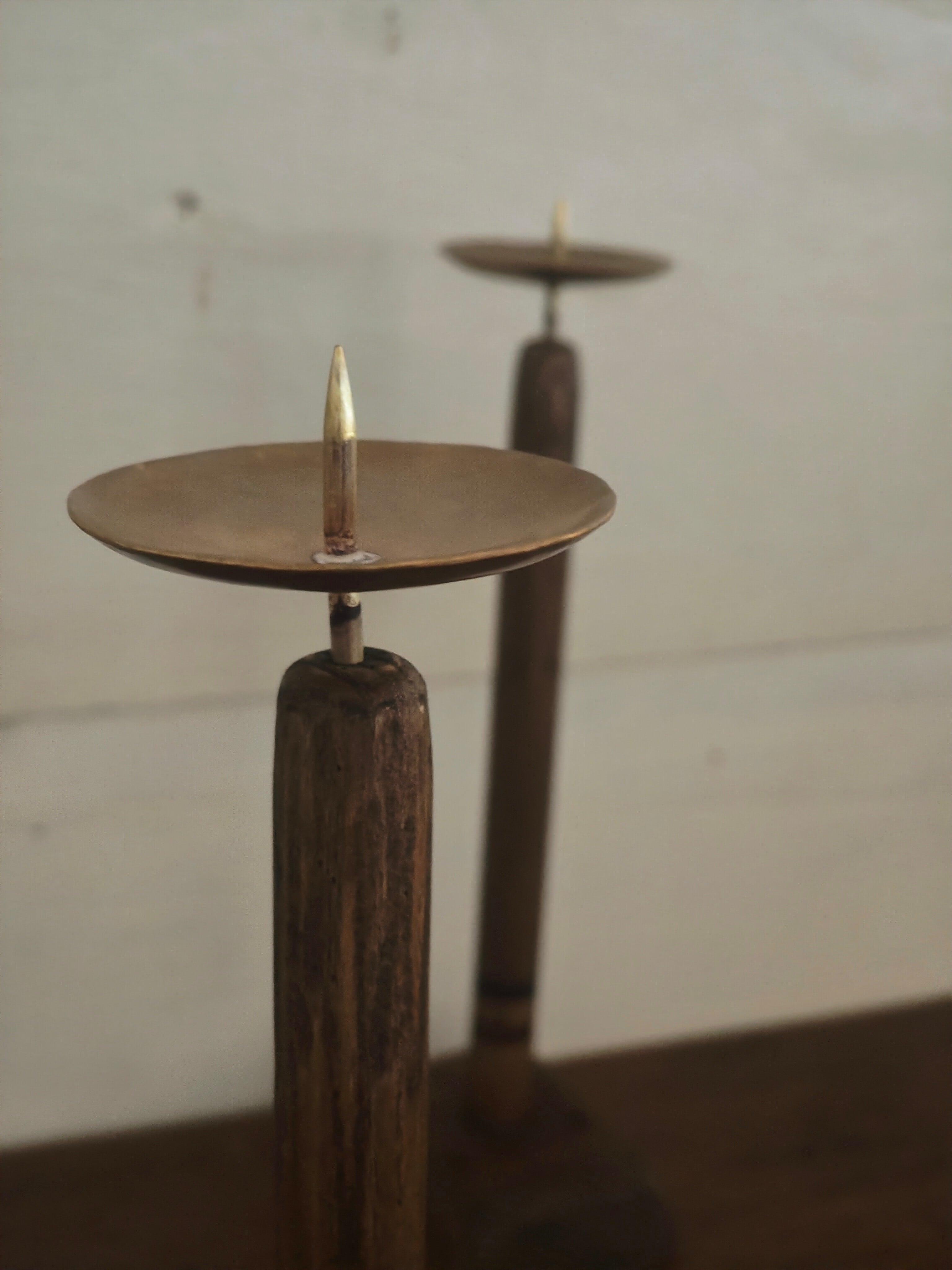 木と真鍮の燭台 単