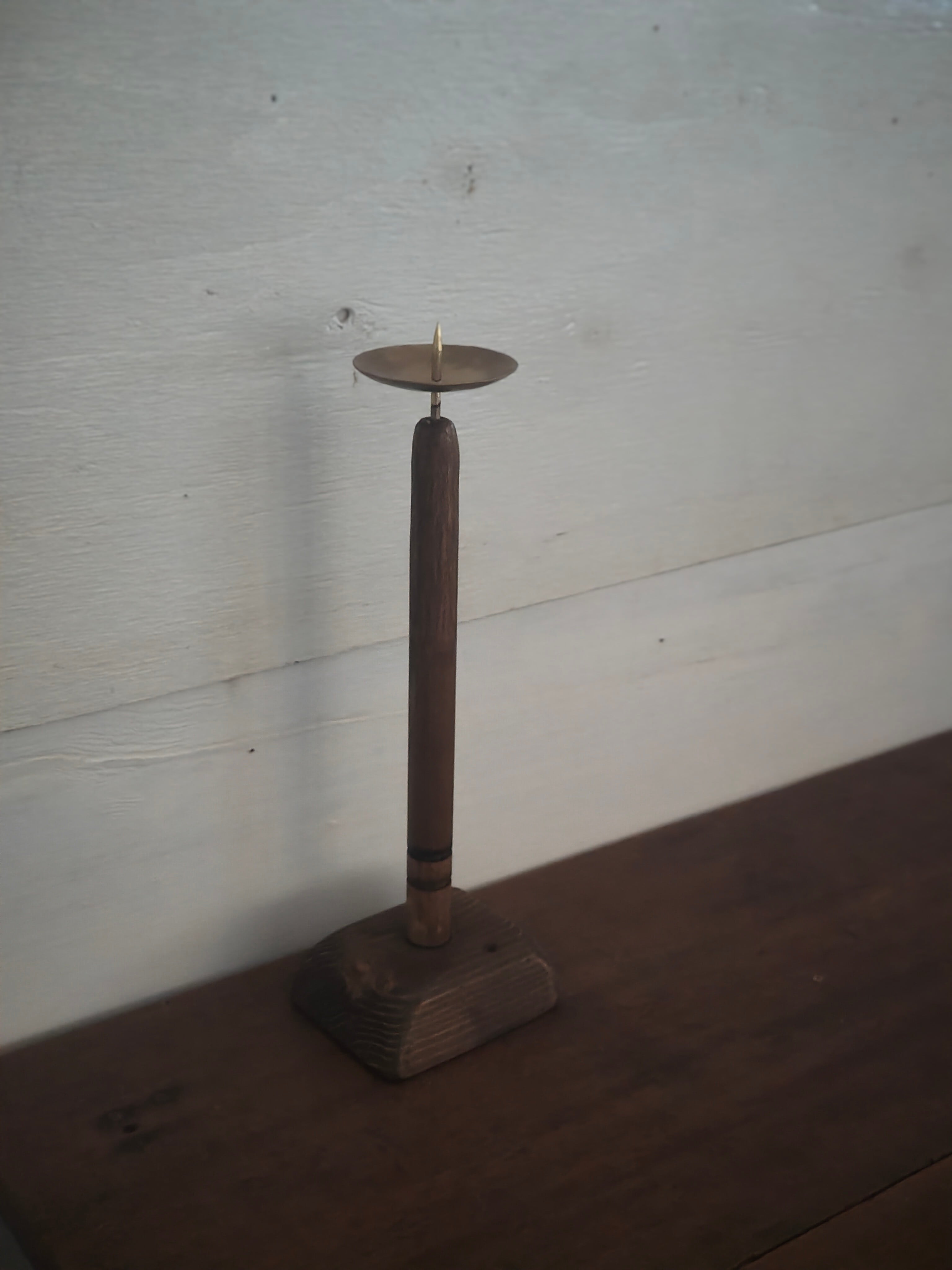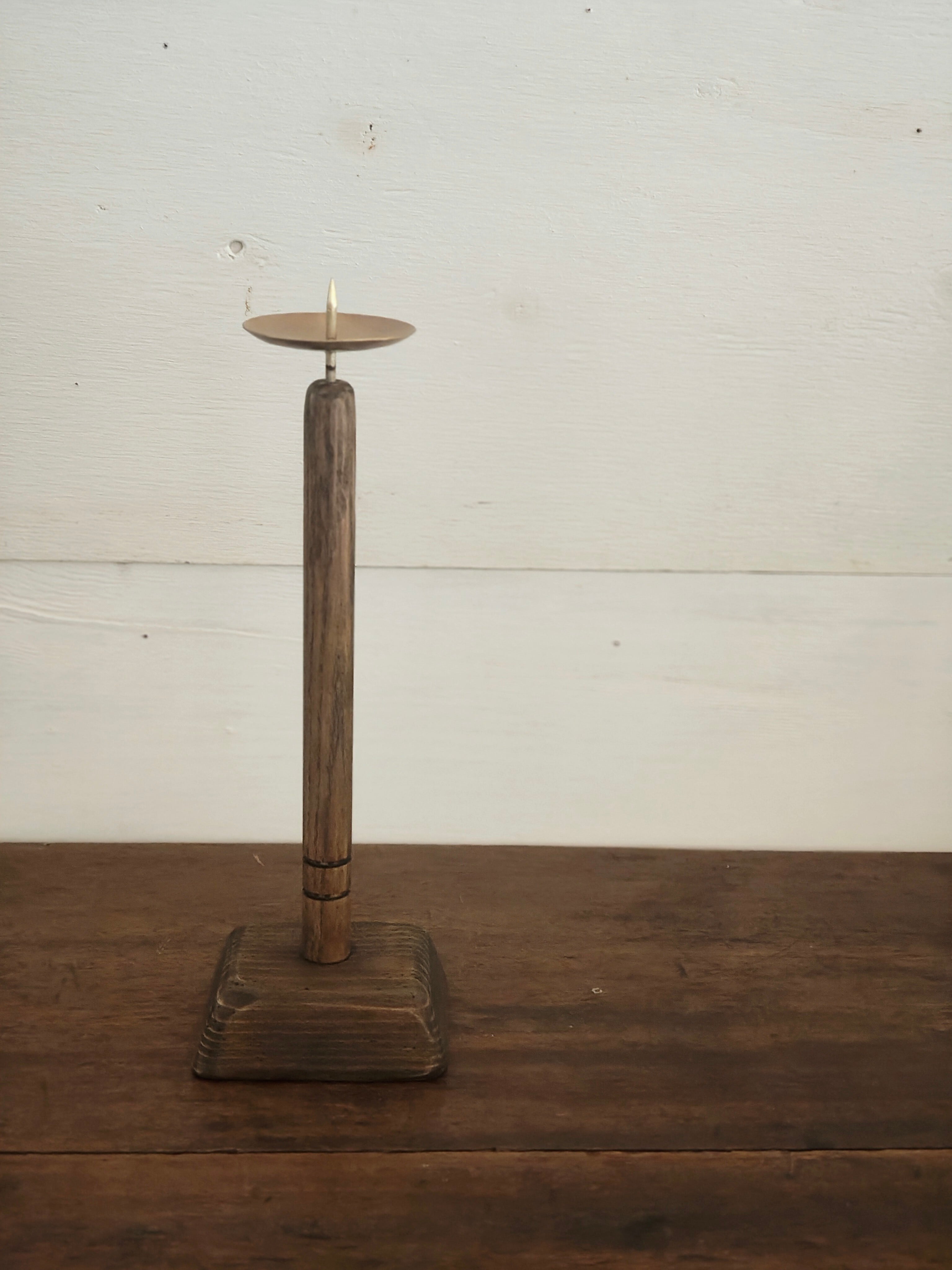 木と真鍮で製作したレトロな雰囲気の燭台。