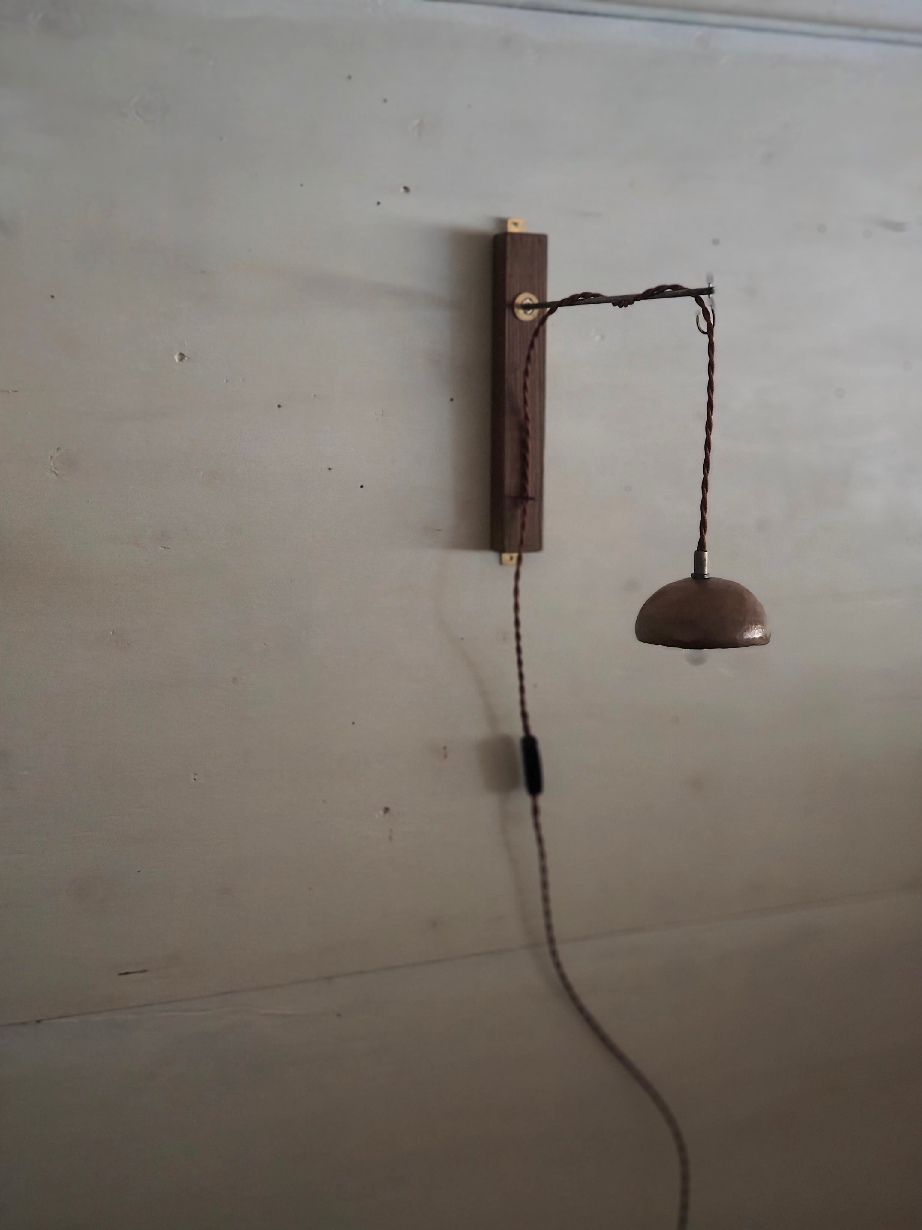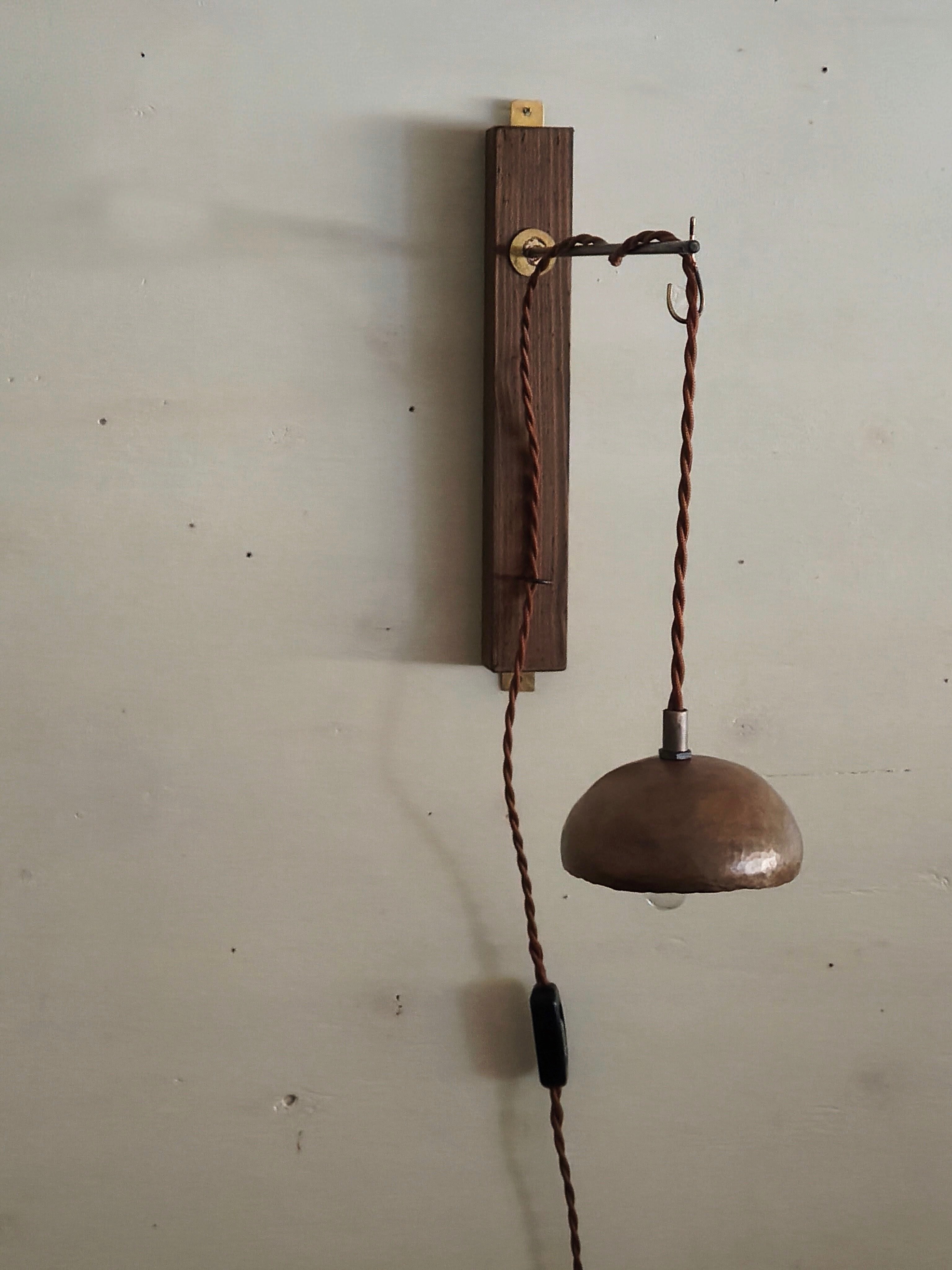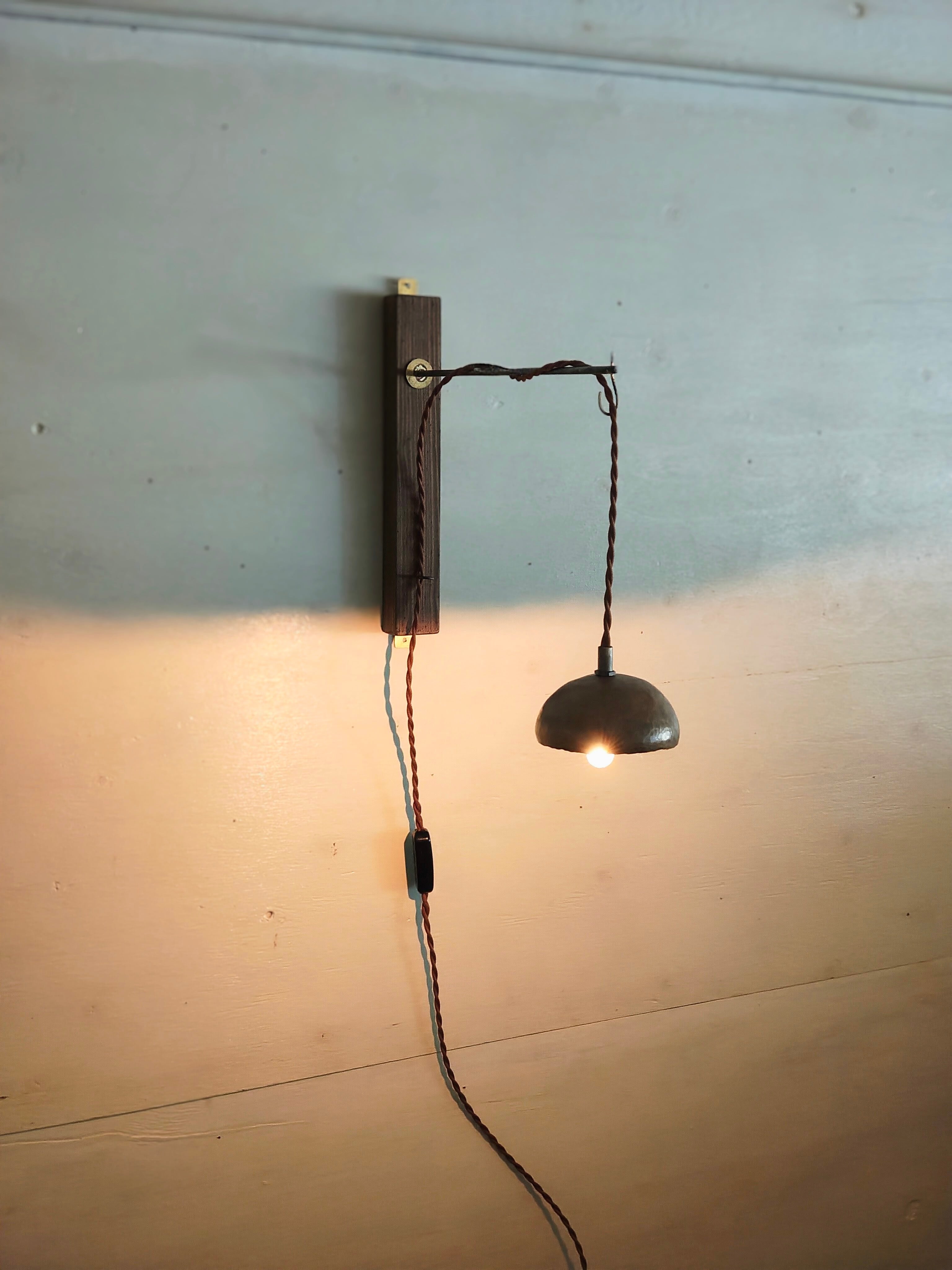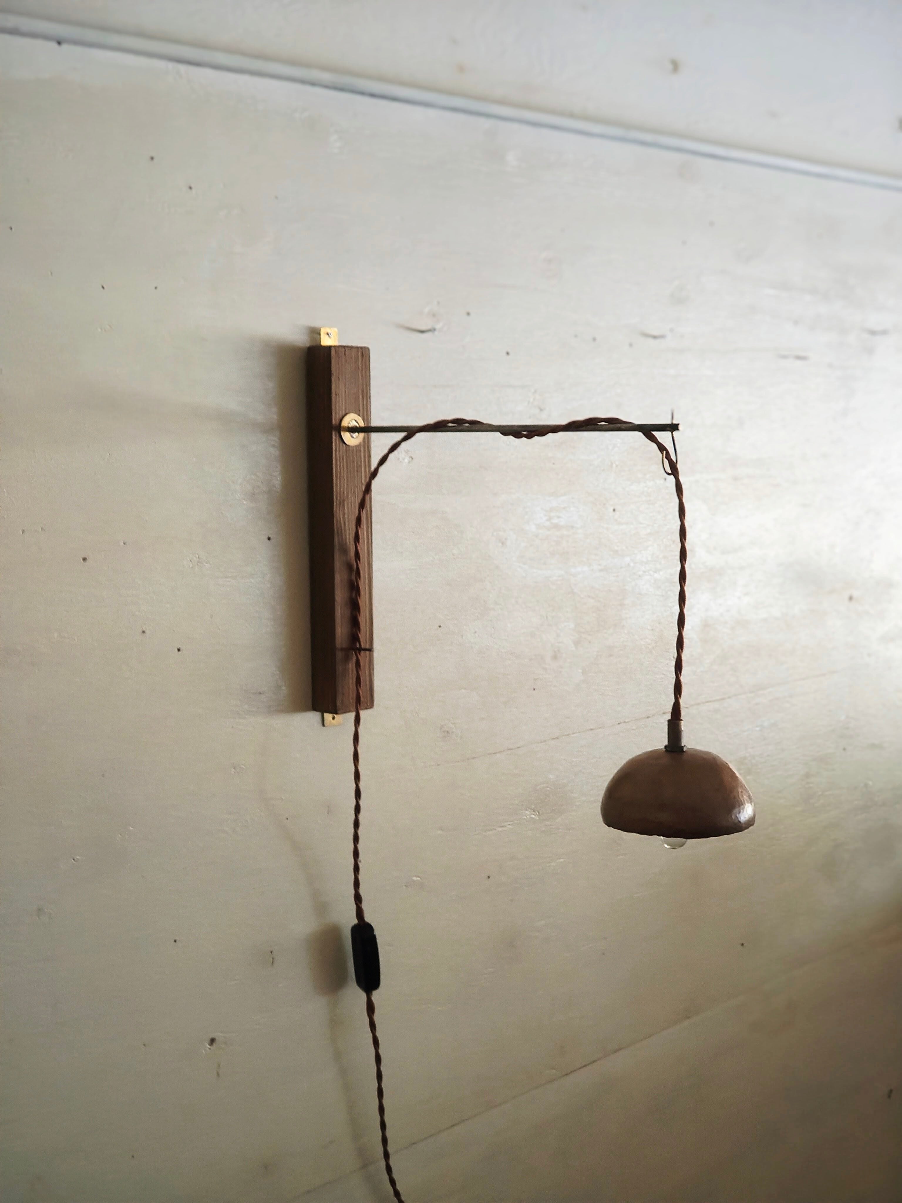 木と鉄と真鍮で製作したウォールランプ
