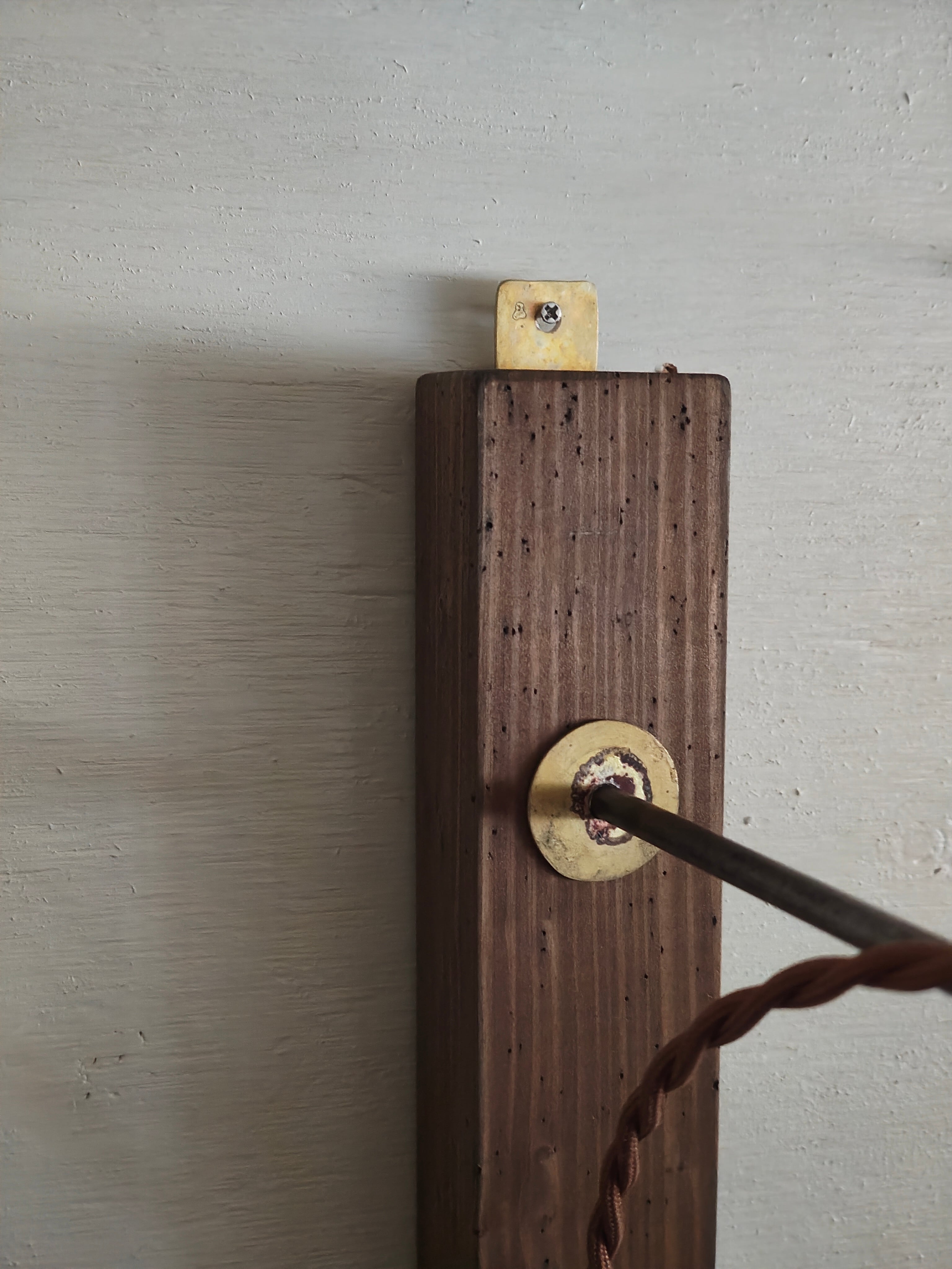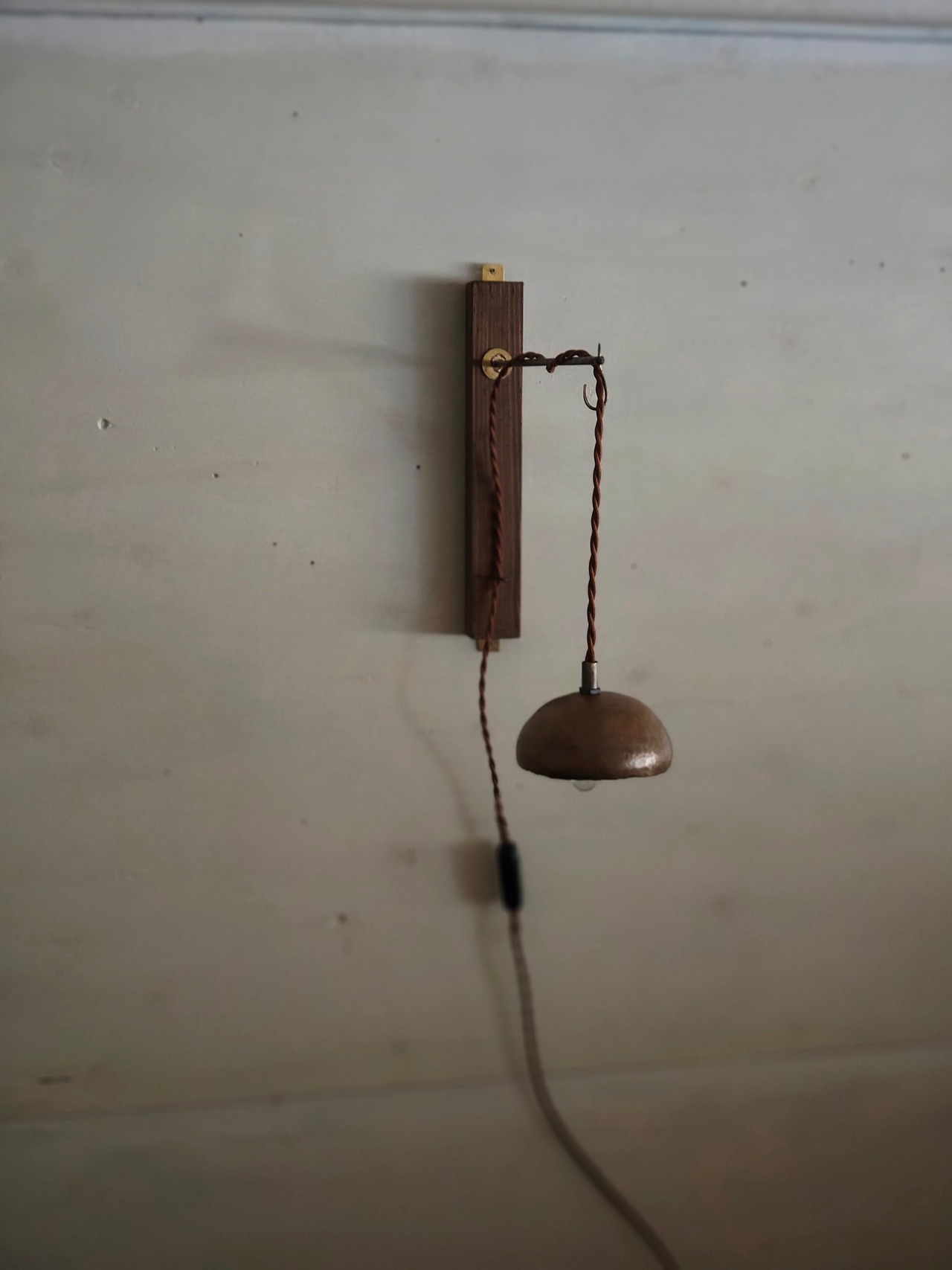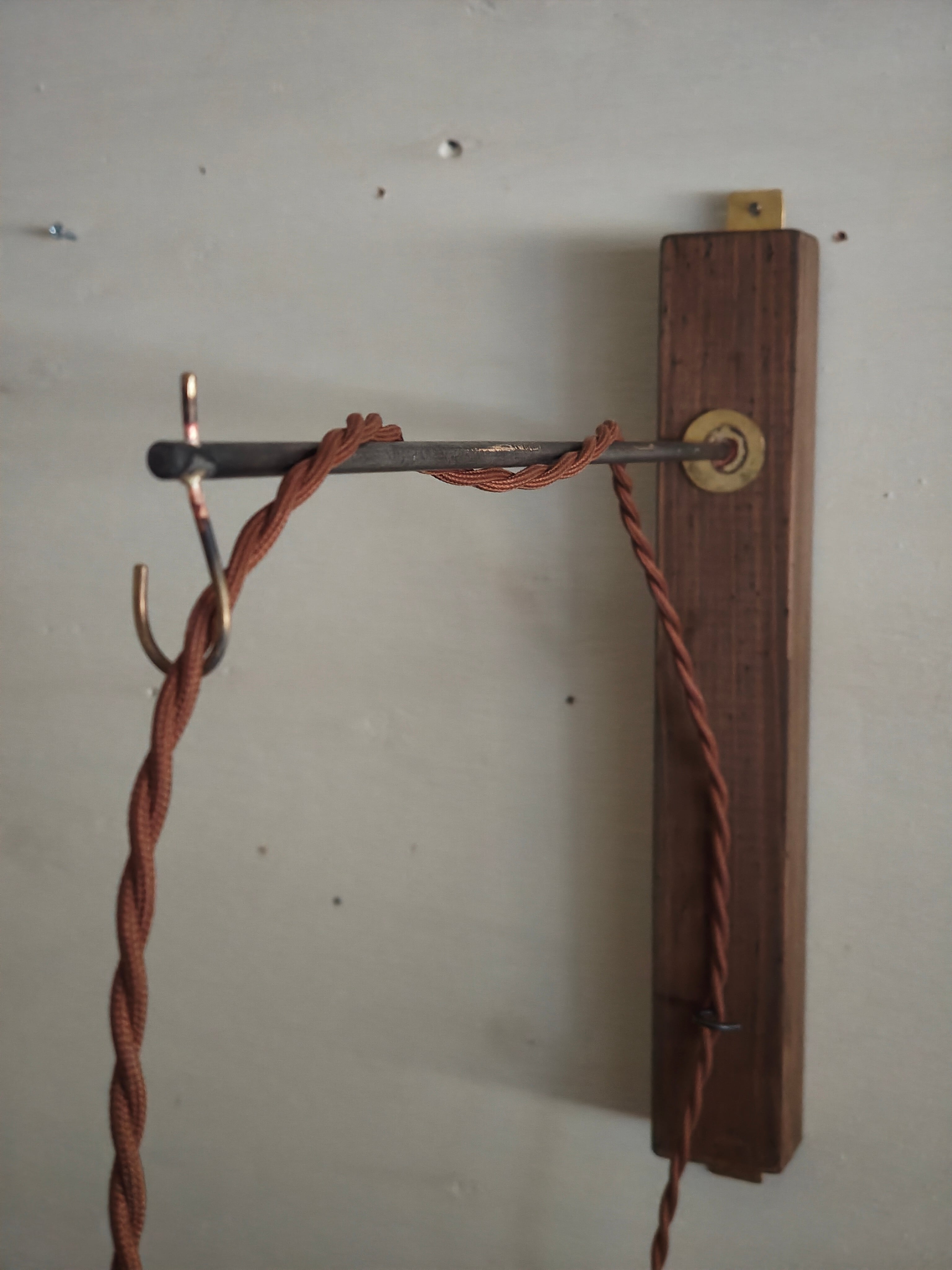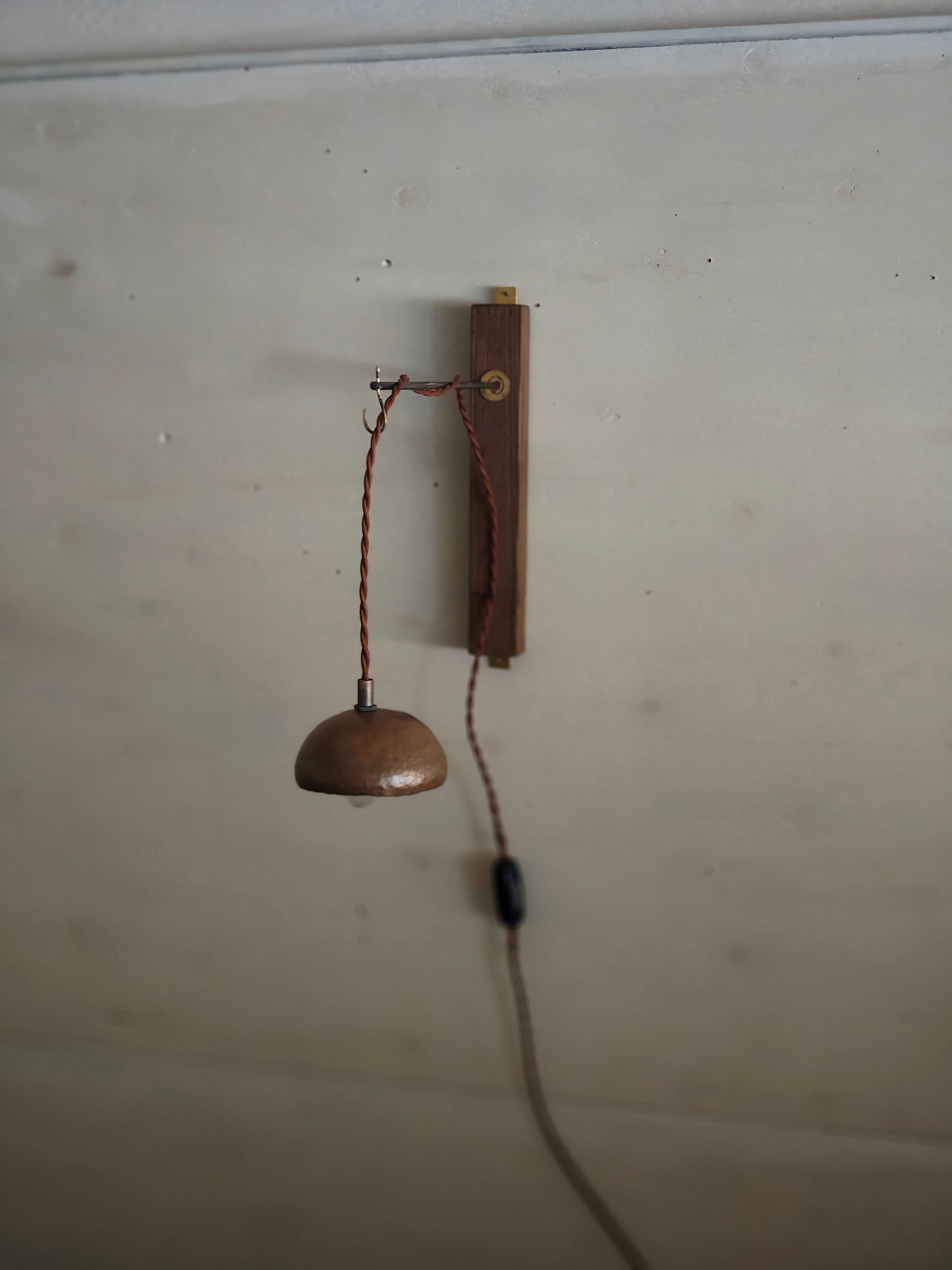 木と鉄と真鍮で製作したウォールランプ